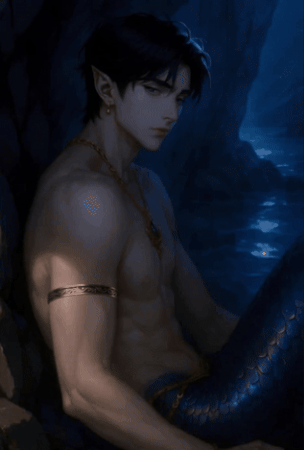 他的腰間繫著一條黃金腰鍊,細緻得像海蛇的脊骨。腰鍊以下,是一條覆滿珠光的魚尾——紫與銀在鱗片間交錯,光影隨著呼吸一明一滅。158Please respect copyright.PENANABTDlXSQKxi